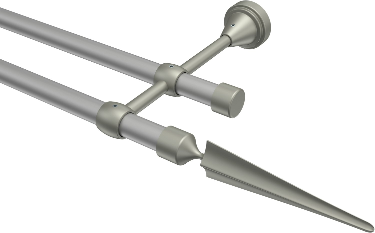 Informationen zu Gardinenstange Metall 16 mm Ø 2-läufig PRIMUS - Lorenzo Silbergrau / Chrom matt (ohne Ringe):