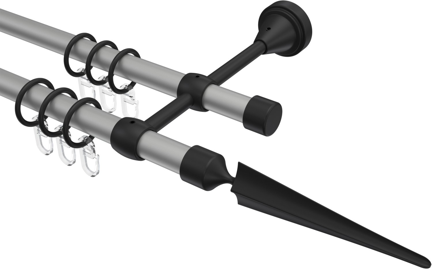 Informationen zu Gardinenstange Metall 16 mm Ø 2-läufig PRIMUS - Lorenzo Silbergrau / Schwarz: