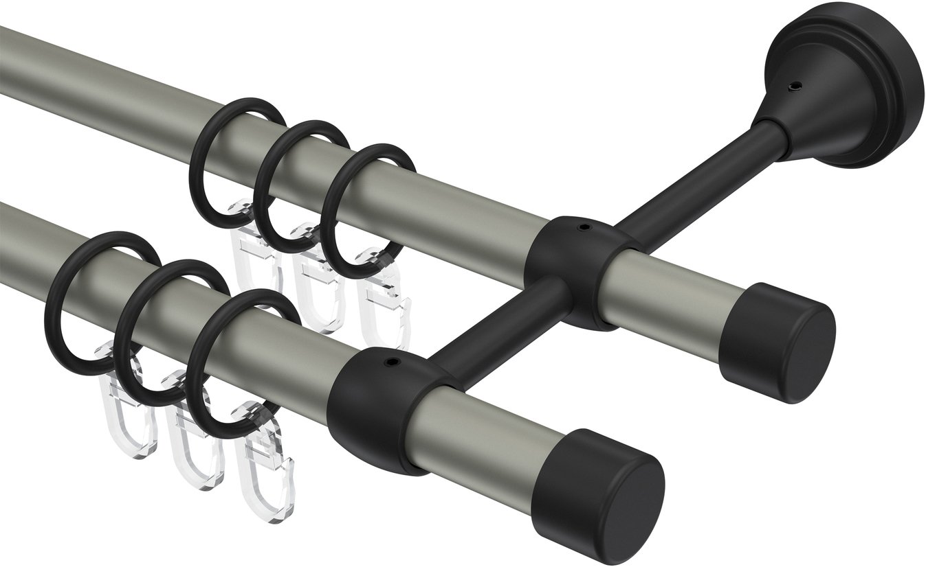 Gardinenstangen aus Metall in 16 mm Ø, 2-läufig, Modell PRIMUS - Lucan Chrom matt / Schwarz