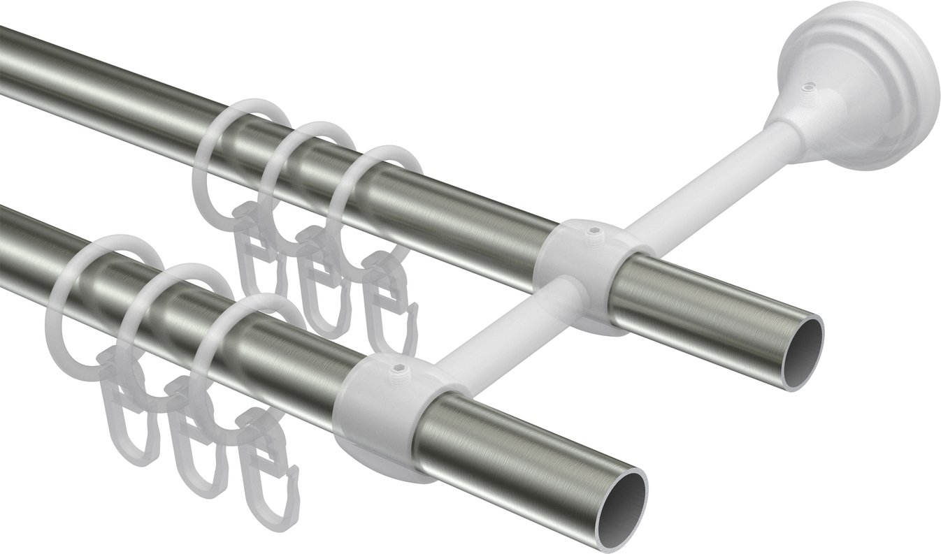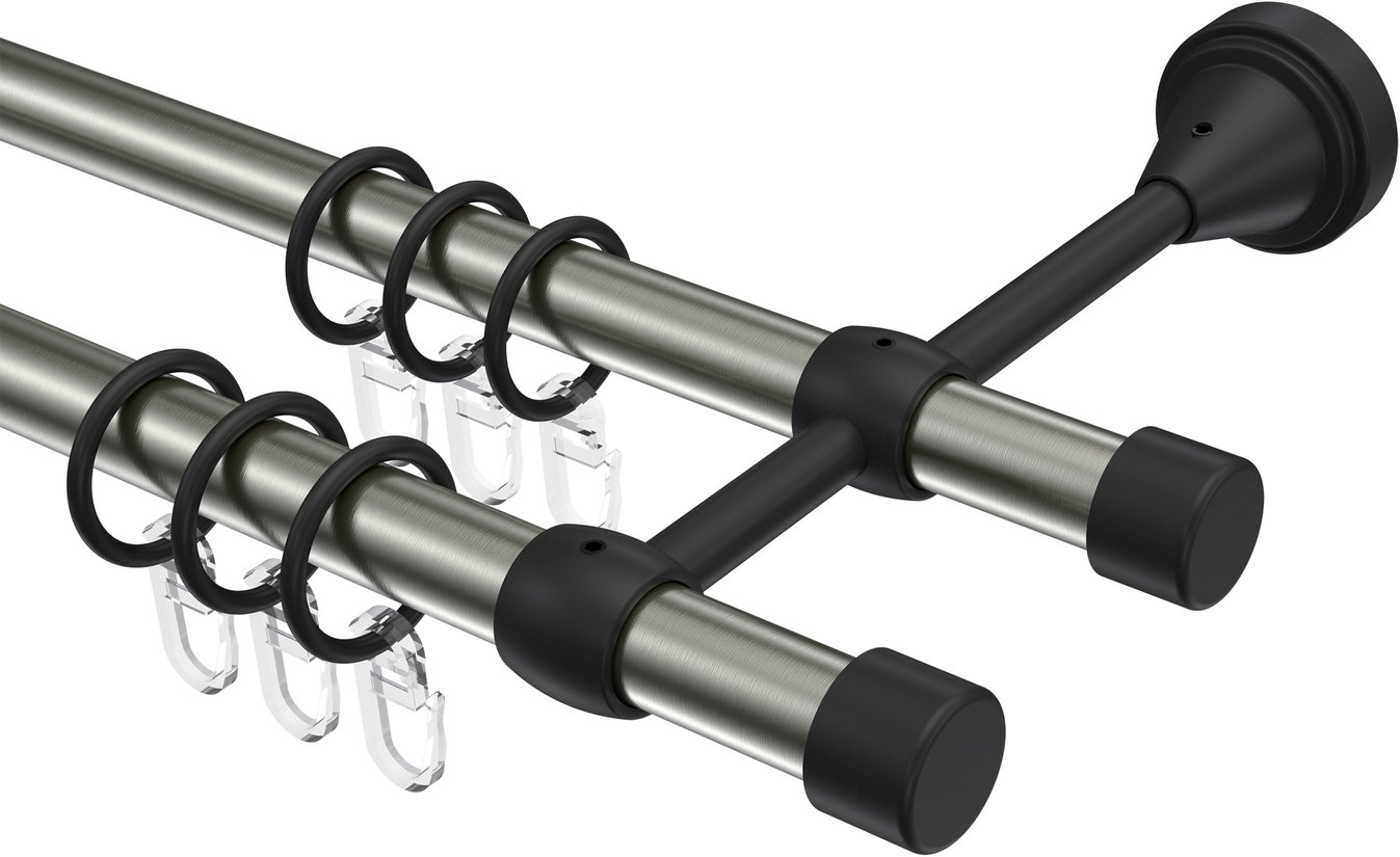 Informationen zu Gardinenstange Metall 16 mm Ø 2-läufig PRIMUS - Lucan Edelstahl-Optik / Schwarz: