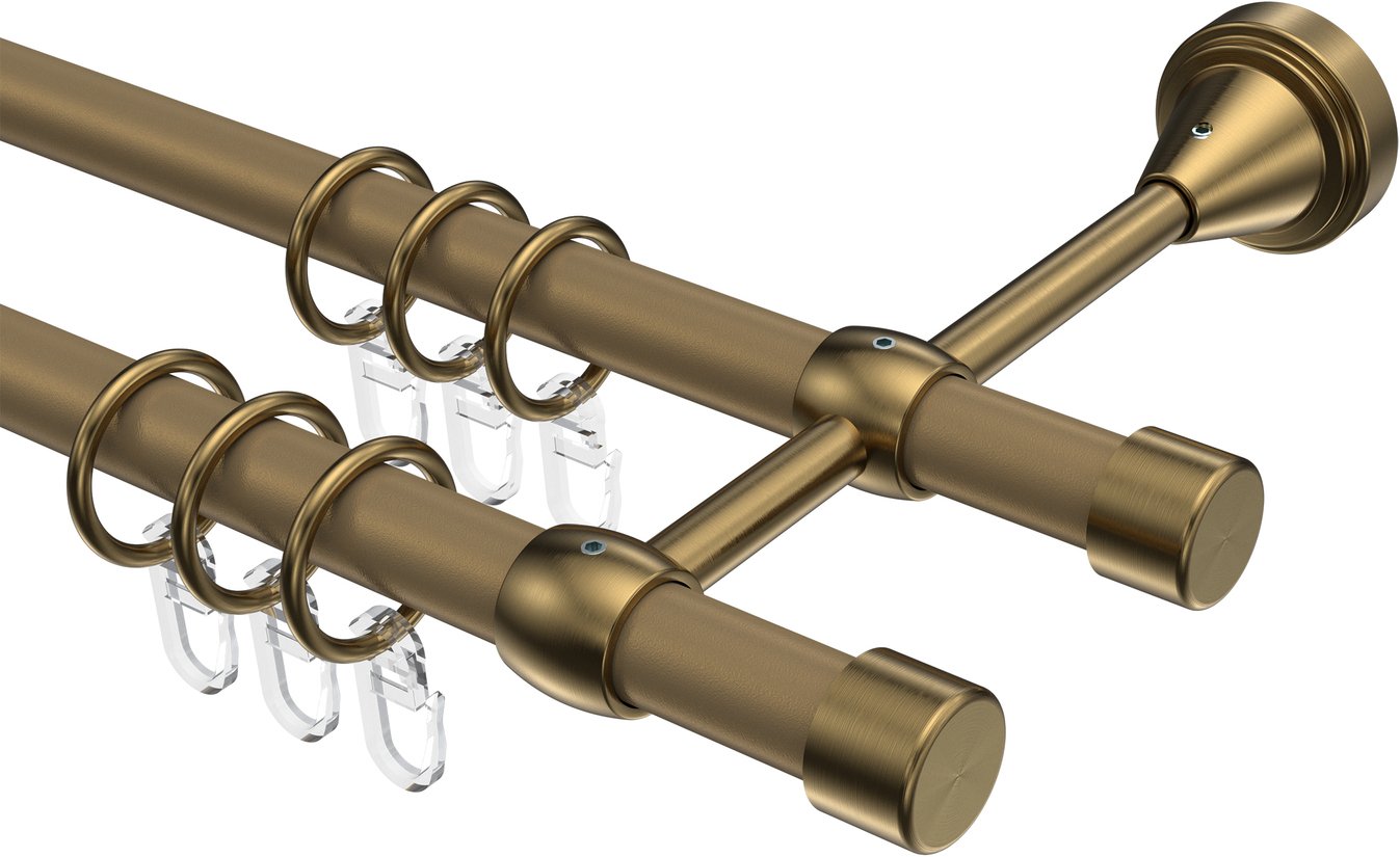 Gardinenstangen aus Metall in 16 mm Ø, 2-läufig, Modell PRIMUS - Lucan Gold matt / Messing Antik