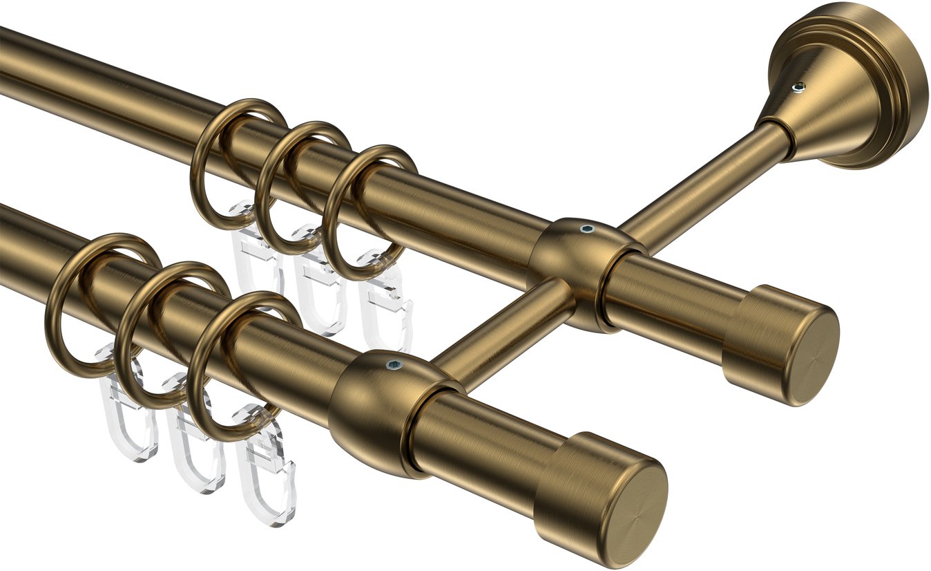 Gardinenstangen aus Metall in 16 mm Ø, 2-läufig, Modell PRIMUS - Lucan Messing Antik
