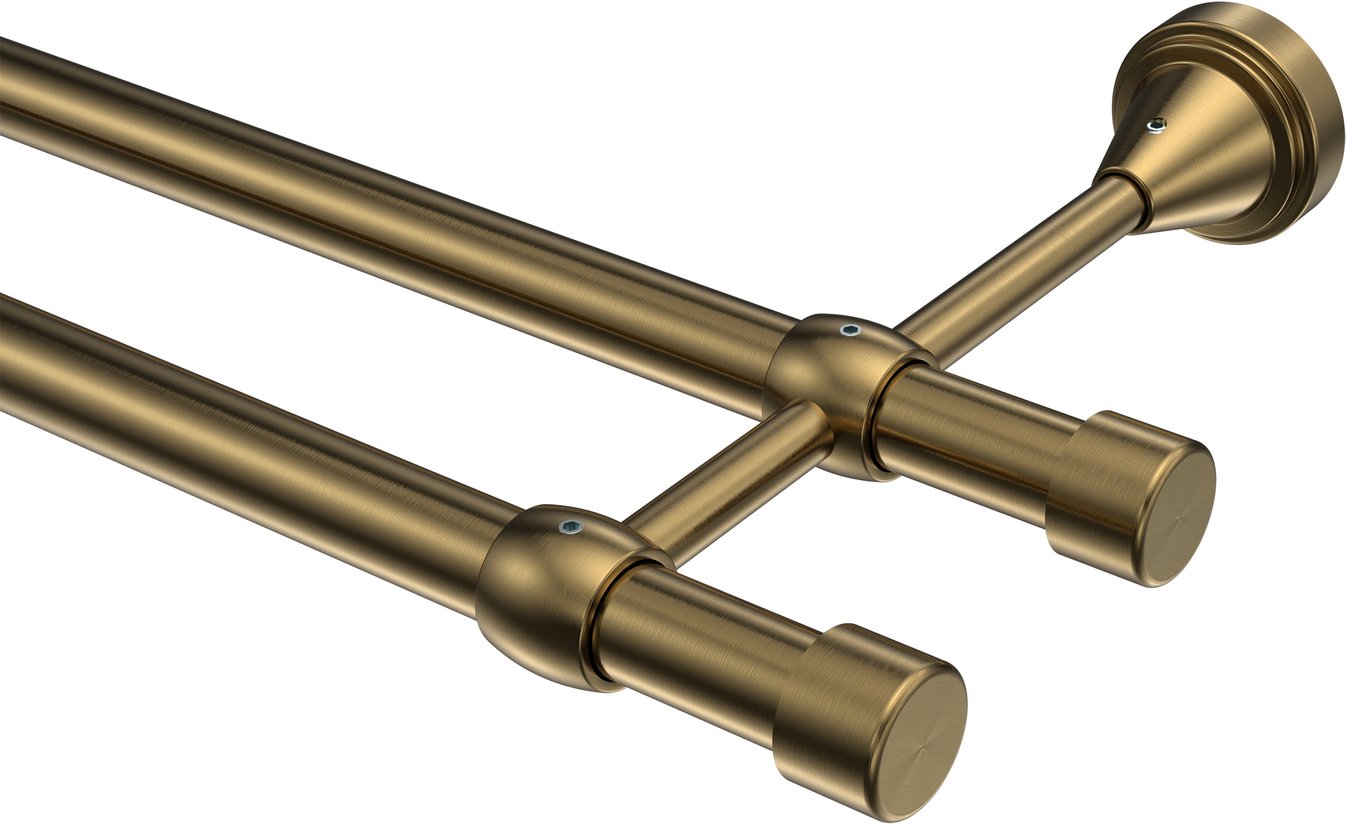 Gardinenstangen aus Metall in 16 mm Ø, 2-läufig, Modell PRIMUS - Lucan Messing Antik (ohne Ringe)
