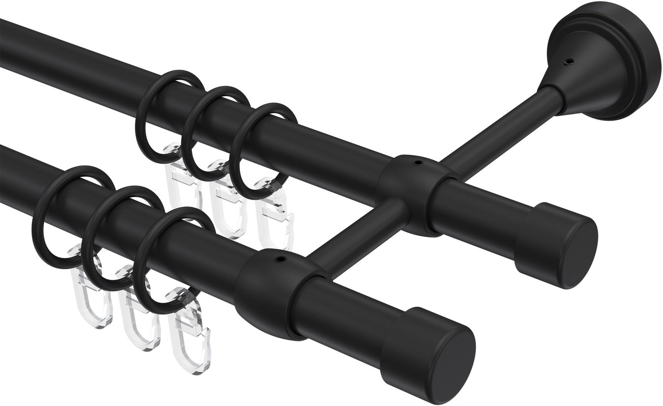 Gardinenstangen aus Metall in 16 mm Ø, 2-läufig, Modell PRIMUS - Lucan Schwarz