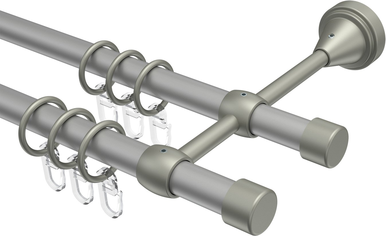 Gardinenstangen aus Metall in 16 mm Ø, 2-läufig, Modell PRIMUS - Lucan Silbergrau / Chrom matt