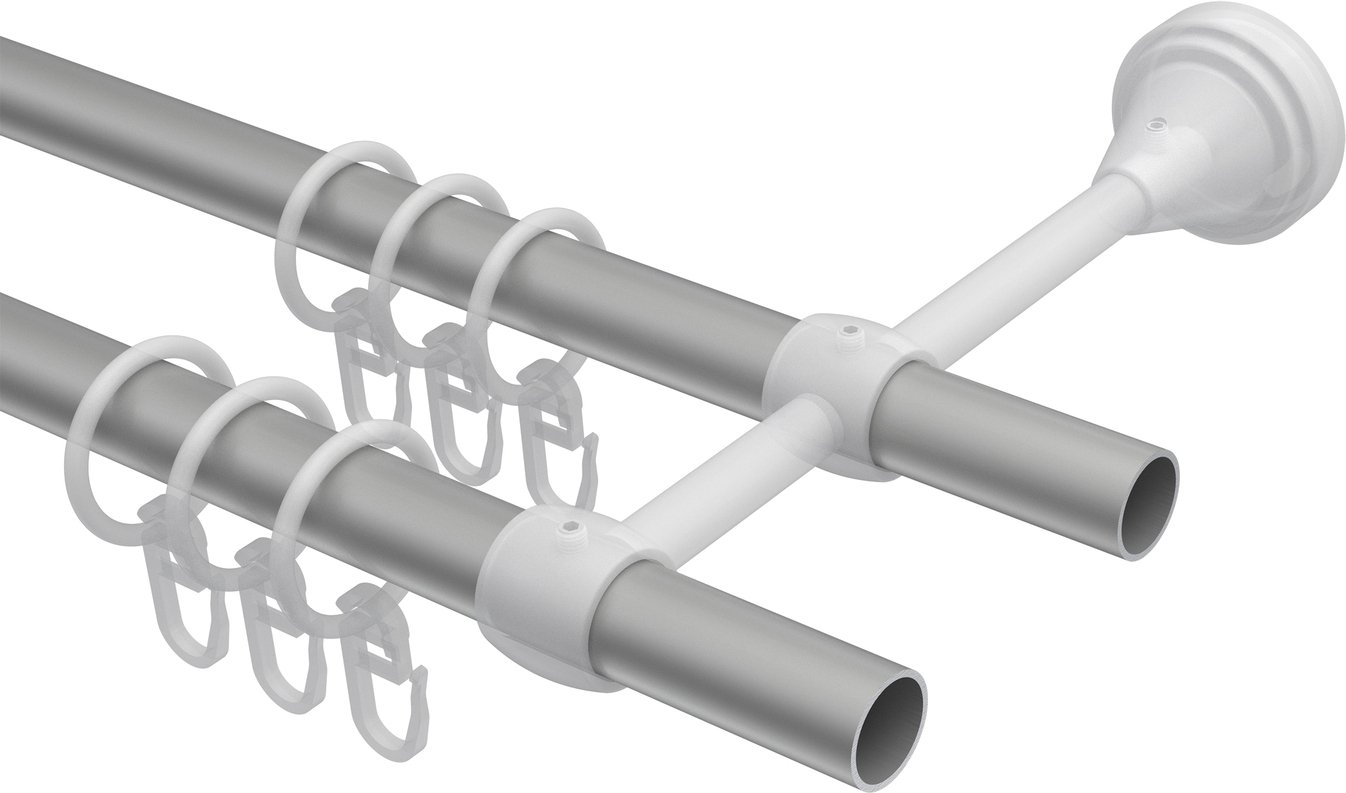 Informationen zu Gardinenstange Metall 16 mm Ø 2-läufig PRIMUS - Lucan Silbergrau / Schwarz: