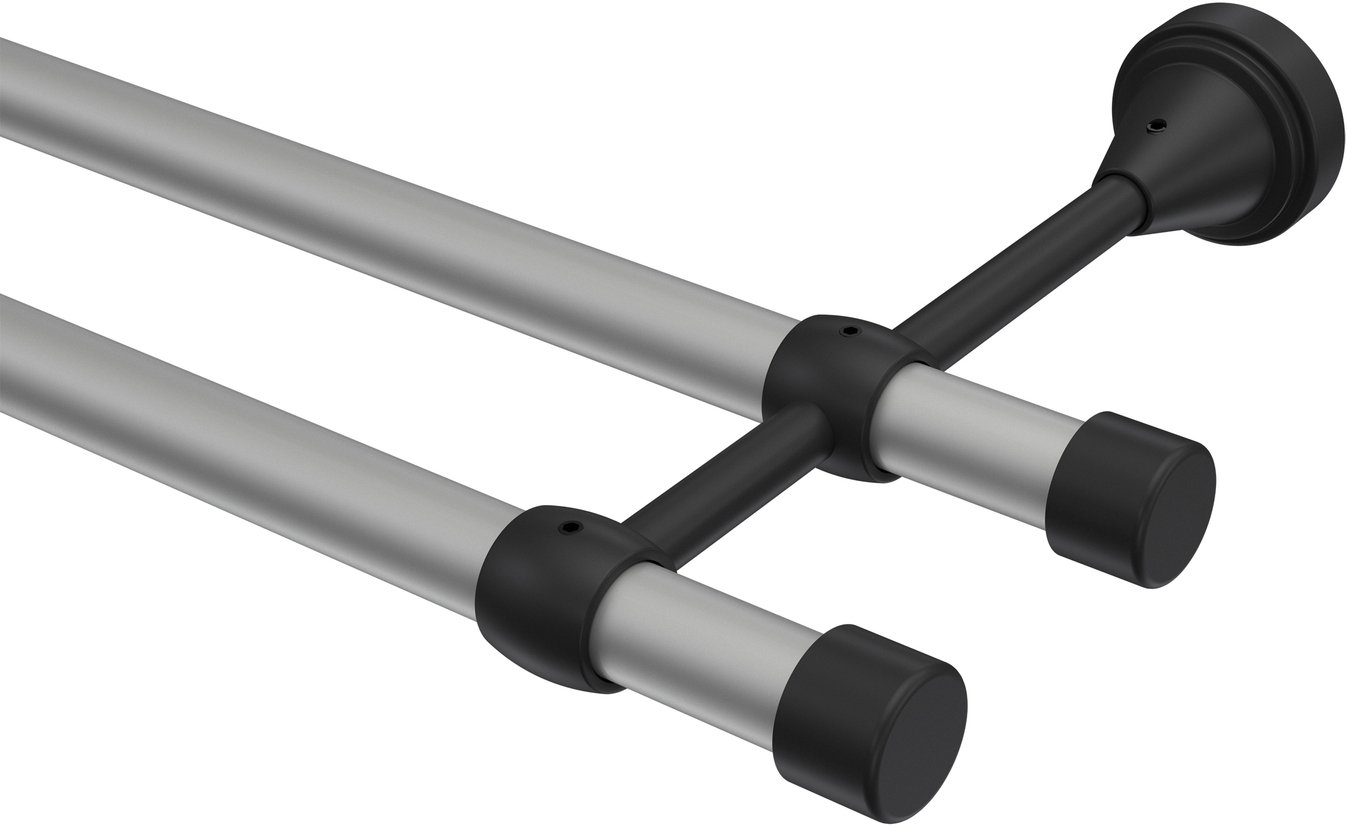 Informationen zu Gardinenstange Metall 16 mm Ø 2-läufig PRIMUS - Lucan Silbergrau / Schwarz (ohne Ringe):