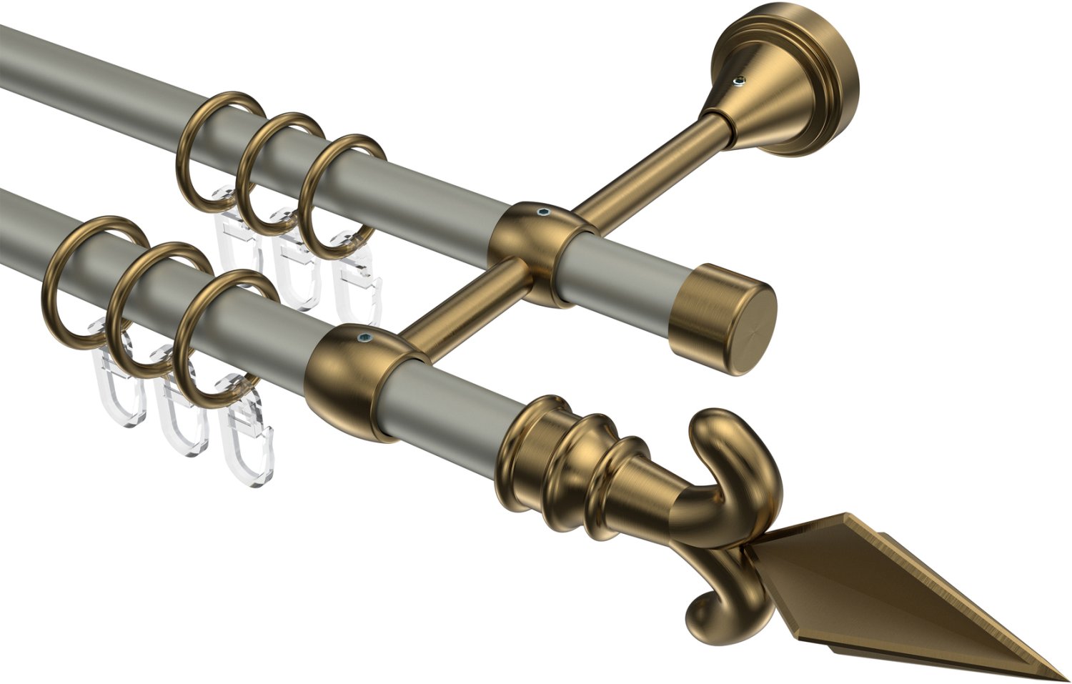 Gardinenstangen aus Metall in 16 mm Ø, 2-läufig, Modell PRIMUS - Matteo Chrom matt / Messing Antik