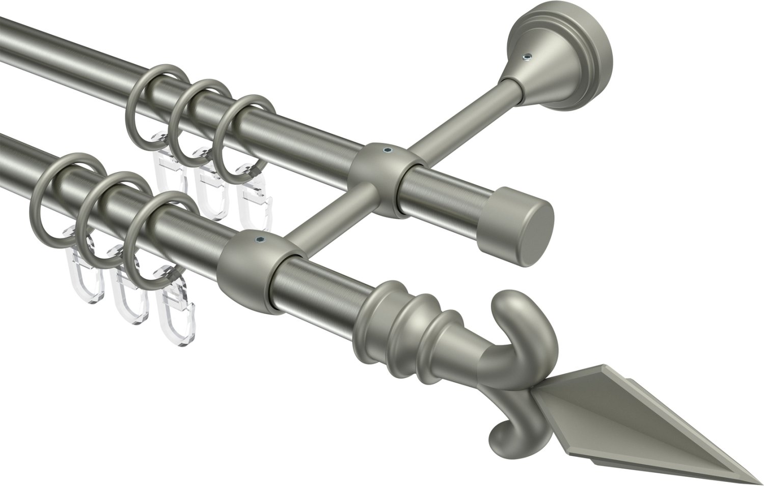 Gardinenstangen aus Metall in 16 mm Ø, 2-läufig, Modell PRIMUS - Matteo Edelstahl-Optik / Chrom matt