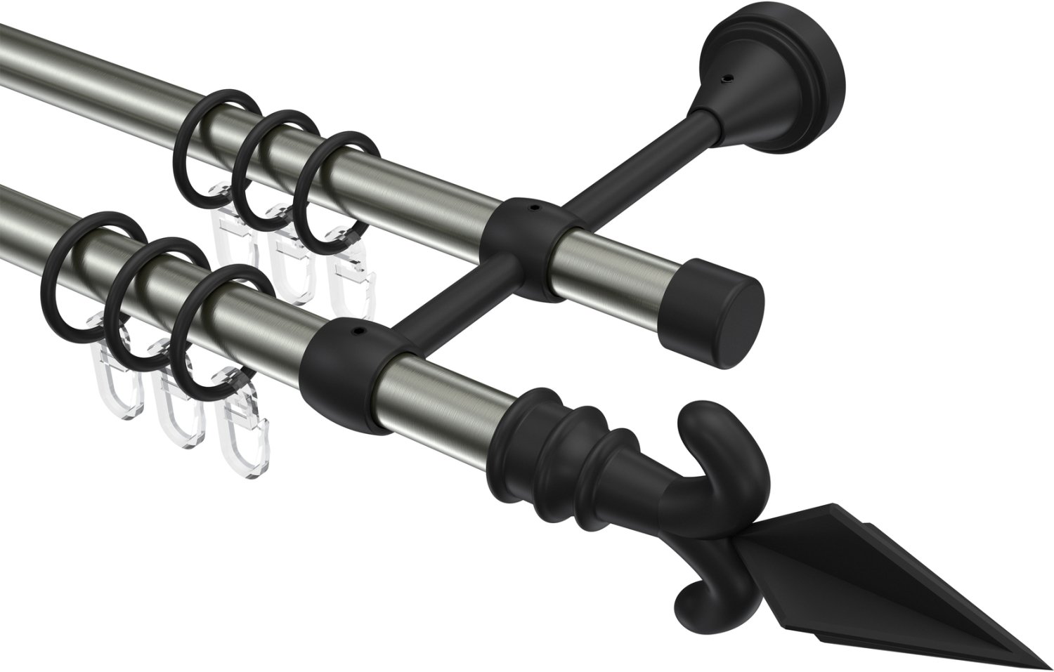 Informationen zu Gardinenstange Metall 16 mm Ø 2-läufig PRIMUS - Matteo Edelstahl-Optik / Schwarz: