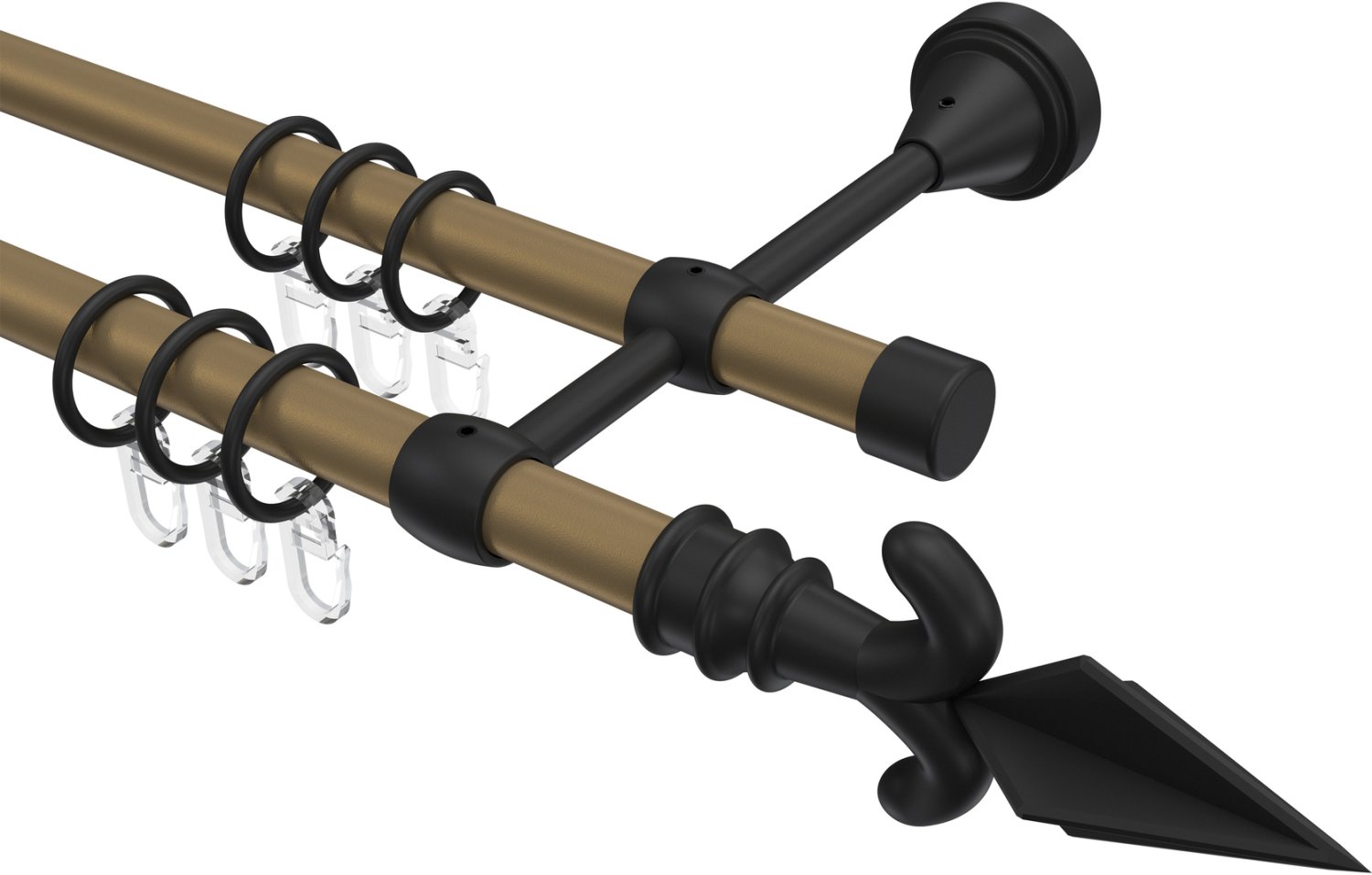 Gardinenstangen aus Metall in 16 mm Ø, 2-läufig, Modell PRIMUS - Matteo Gold matt / Schwarz