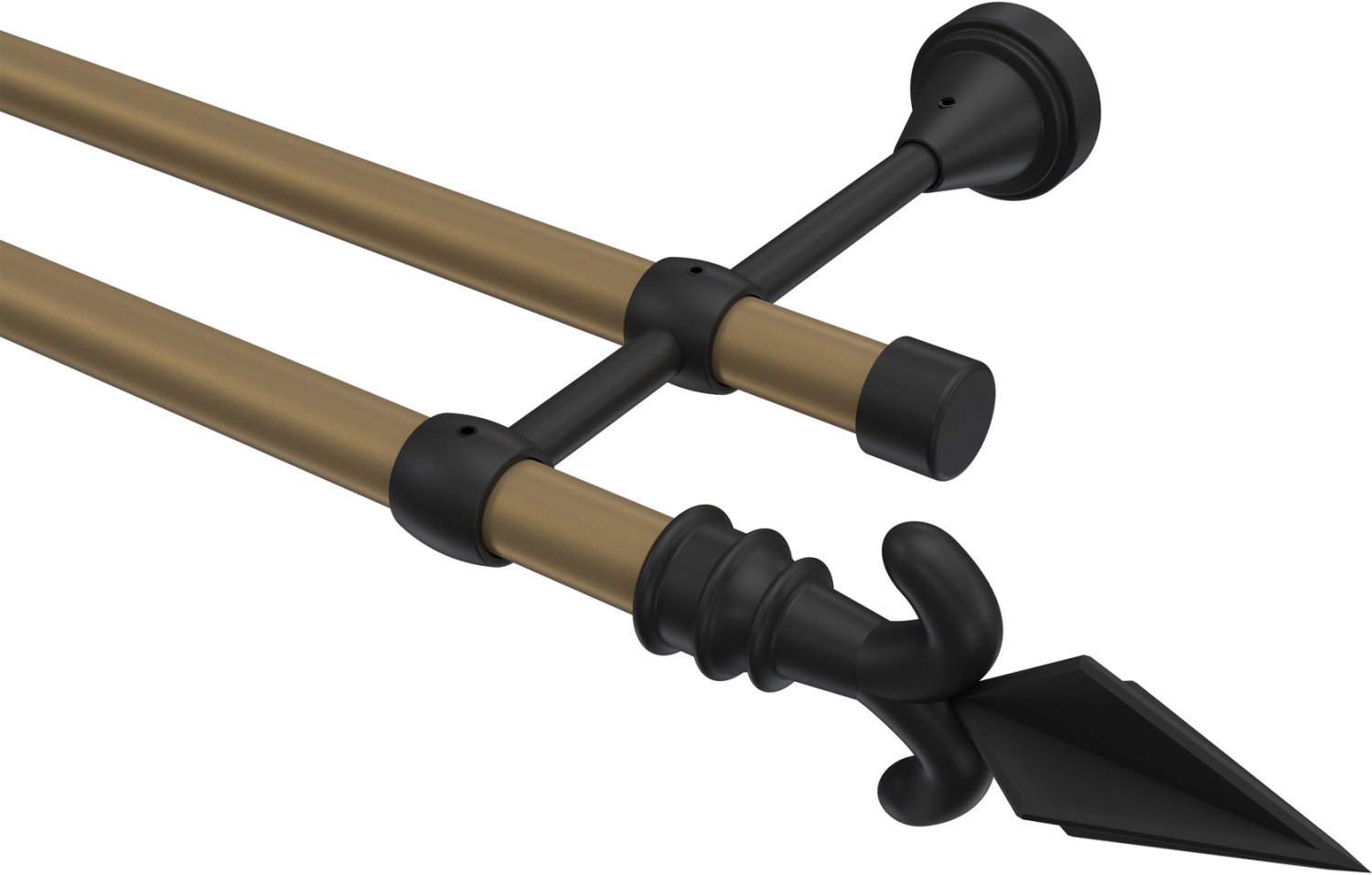 Informationen zu Gardinenstange Metall 16 mm Ø 2-läufig PRIMUS - Matteo Gold matt / Schwarz (ohne Ringe):