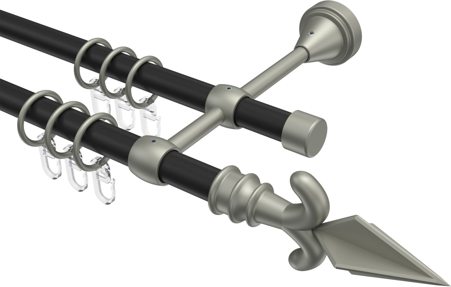 Gardinenstangen aus Metall in 16 mm Ø, 2-läufig, Modell PRIMUS - Matteo Schwarz / Chrom matt