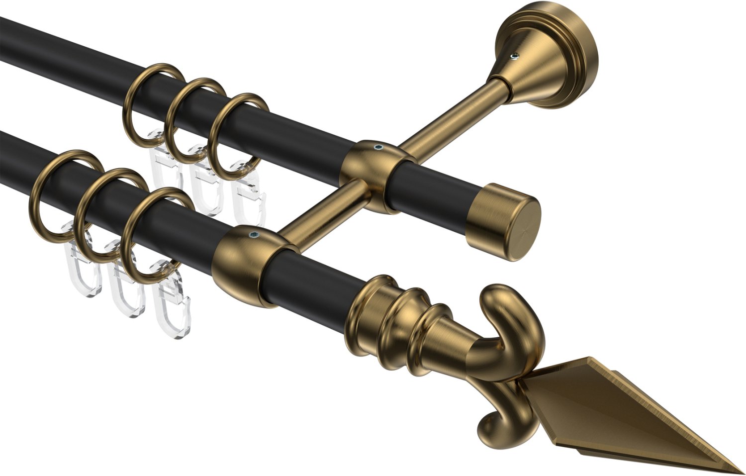 Informationen zu Gardinenstange Metall 16 mm Ø 2-läufig PRIMUS - Matteo Schwarz / Messing Antik: