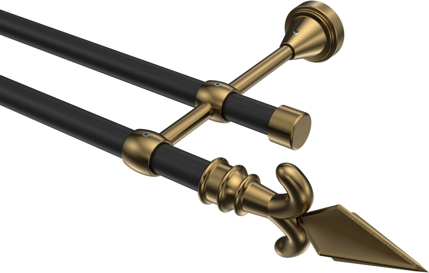 Informationen zu Gardinenstange Metall 16 mm Ø 2-läufig PRIMUS - Matteo Schwarz / Messing Antik (ohne Ringe):