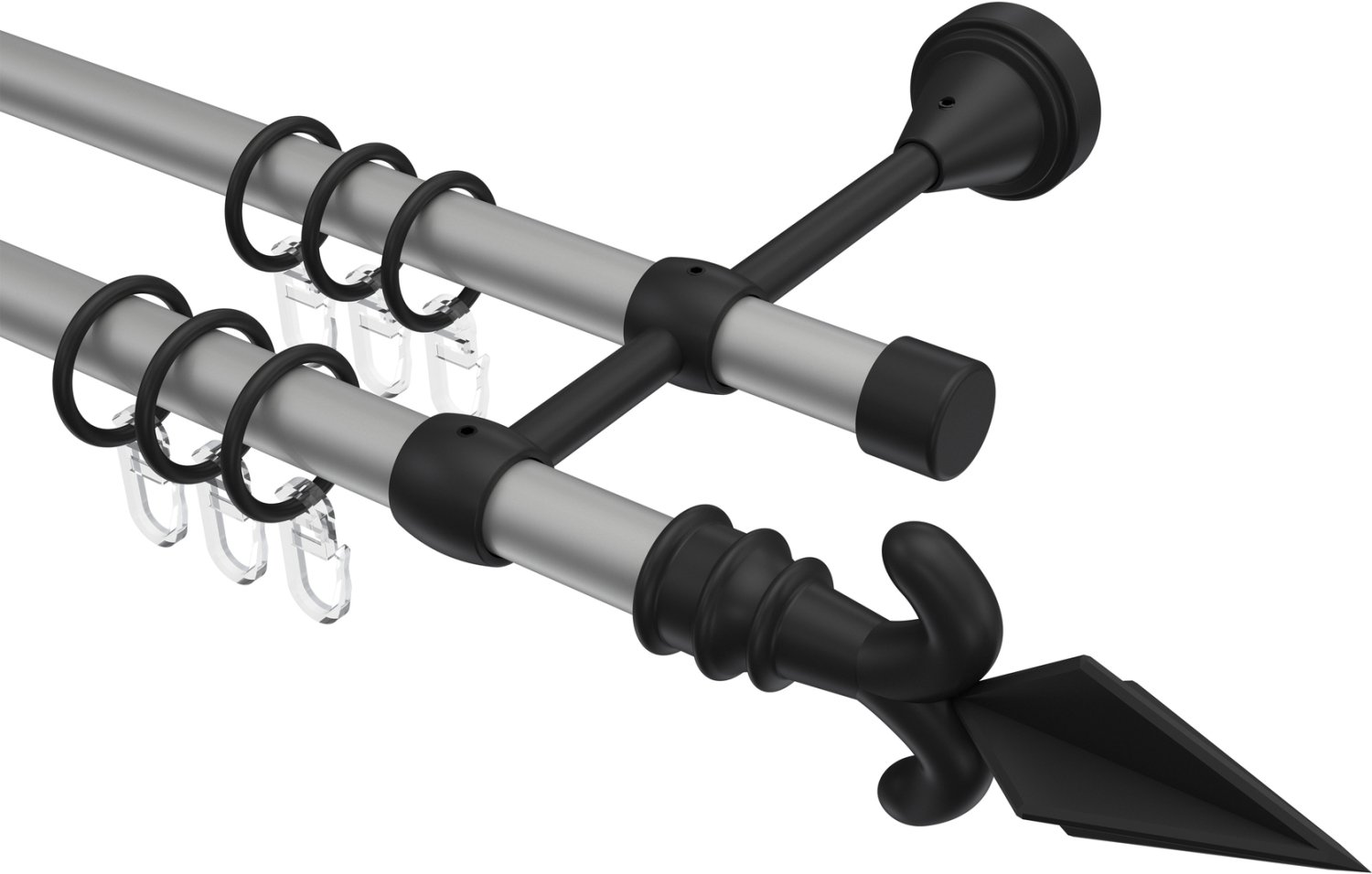 Gardinenstangen aus Metall in 16 mm Ø, 2-läufig, Modell PRIMUS - Matteo Silbergrau / Schwarz