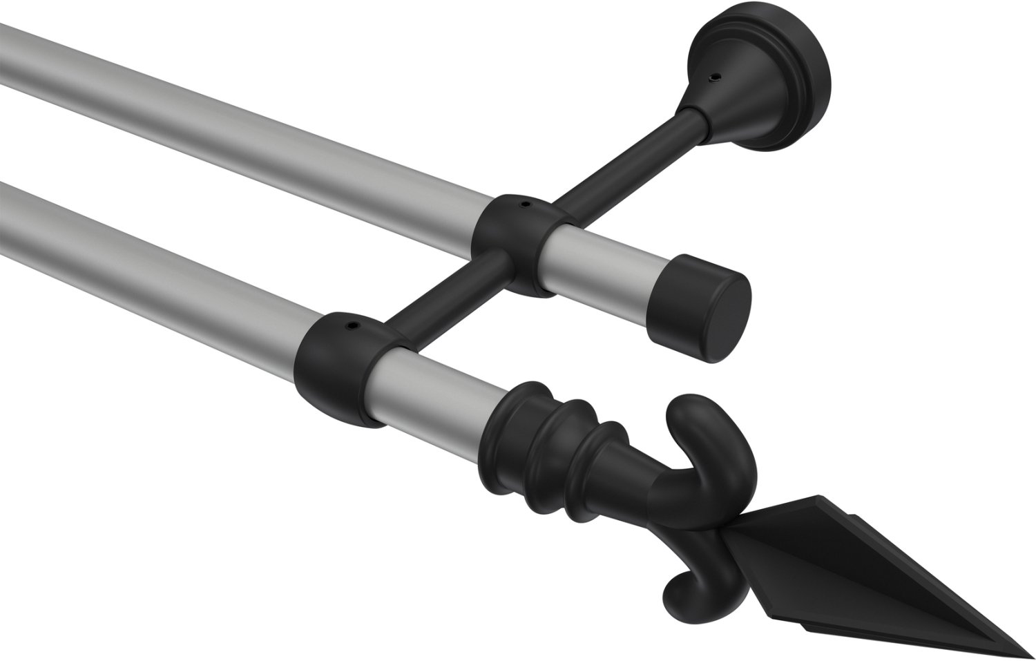 Gardinenstangen aus Metall in 16 mm Ø, 2-läufig, Modell PRIMUS - Matteo Silbergrau / Schwarz (ohne Ringe)