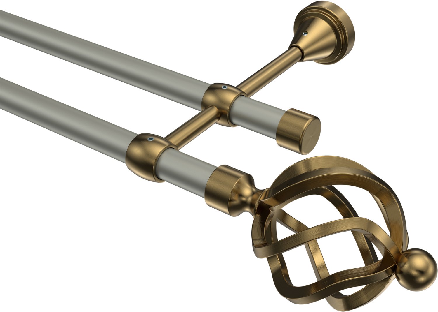 Gardinenstangen aus Metall in 16 mm Ø, 2-läufig, Modell PRIMUS - Paolo Chrom matt / Messing Antik (ohne Ringe)