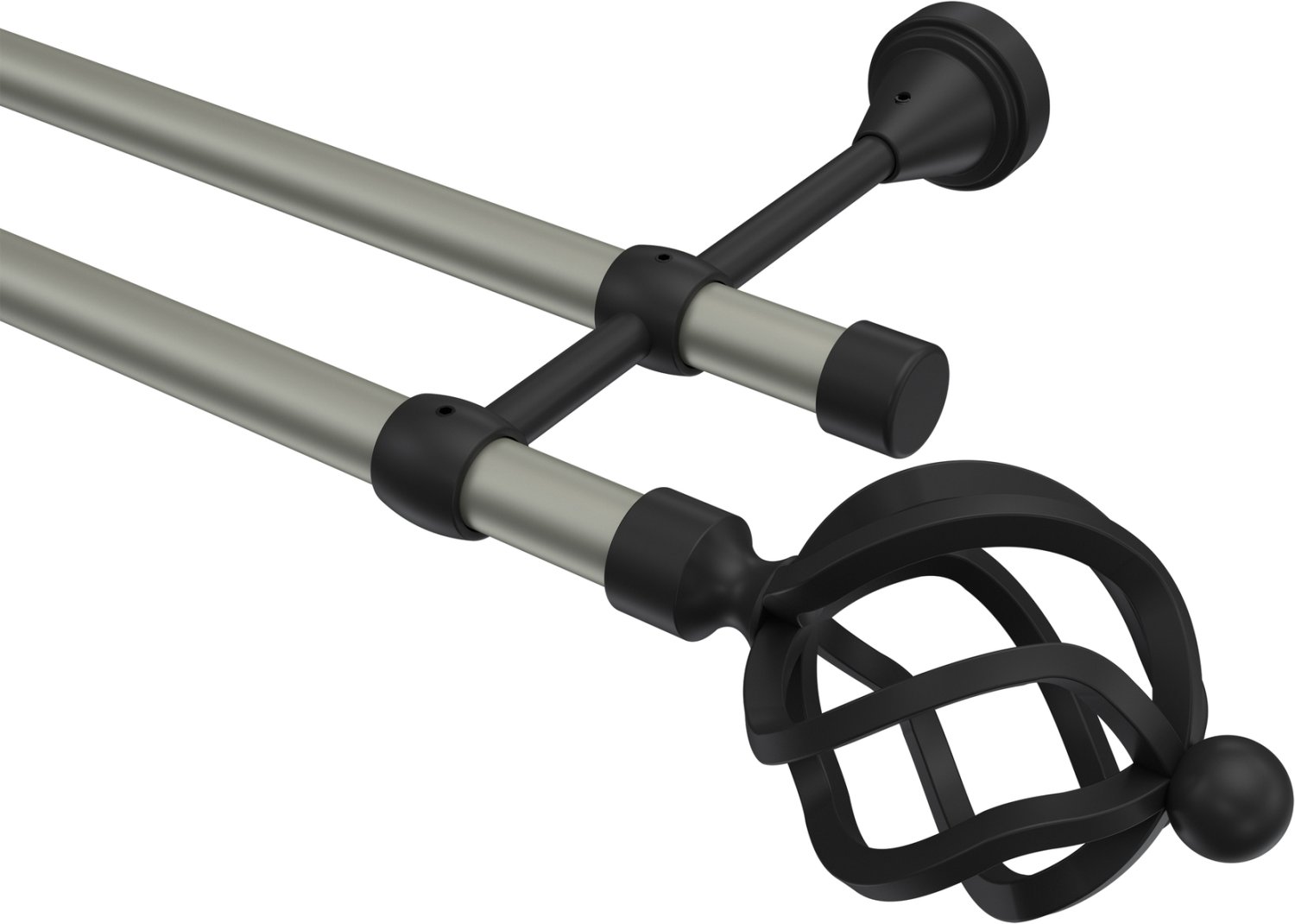Informationen zu Gardinenstange Metall 16 mm Ø 2-läufig PRIMUS - Paolo Chrom matt / Schwarz (ohne Ringe):