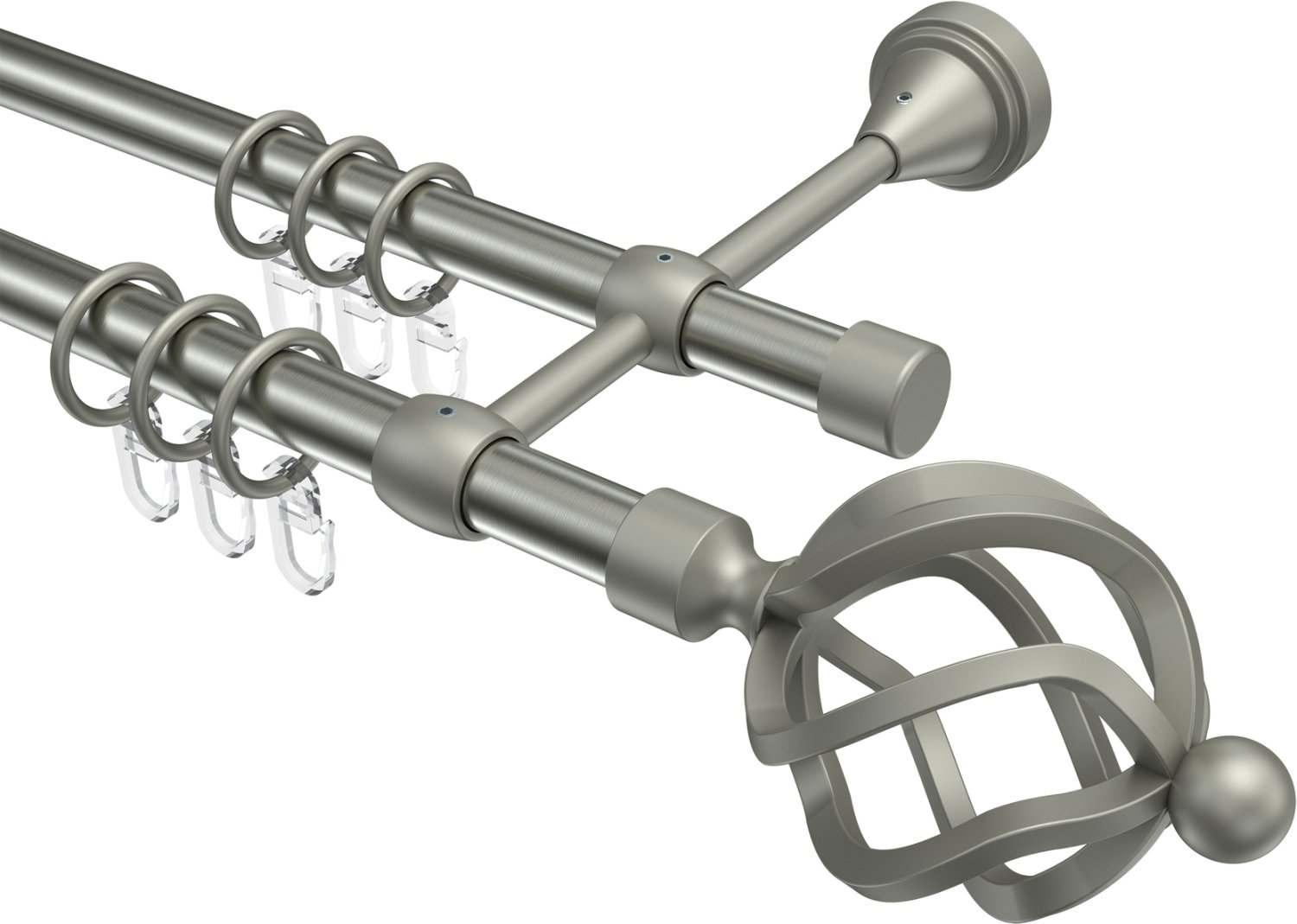 Gardinenstangen aus Metall in 16 mm Ø, 2-läufig, Modell PRIMUS - Paolo Edelstahl-Optik / Chrom matt