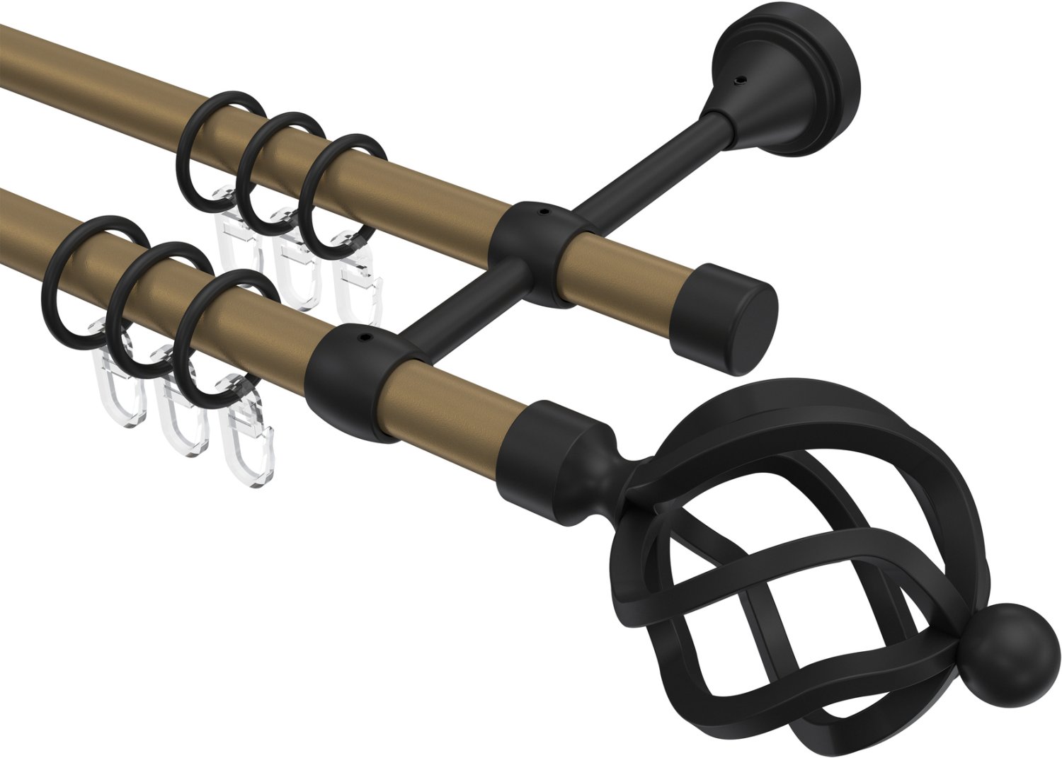 Gardinenstangen aus Metall in 16 mm Ø, 2-läufig, Modell PRIMUS - Paolo Gold matt / Schwarz