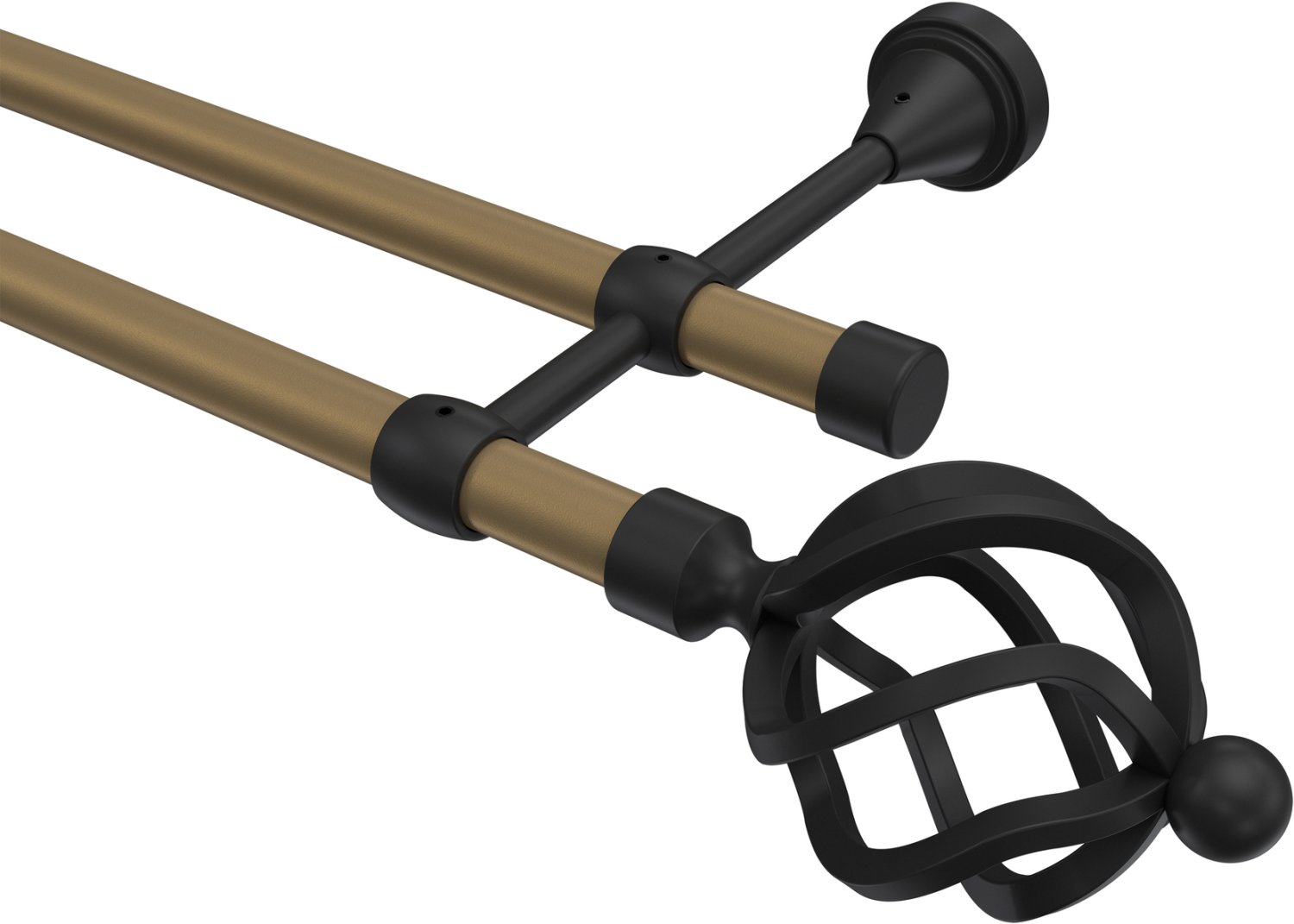 Informationen zu Gardinenstange Metall 16 mm Ø 2-läufig PRIMUS - Paolo Gold matt / Schwarz (ohne Ringe):
