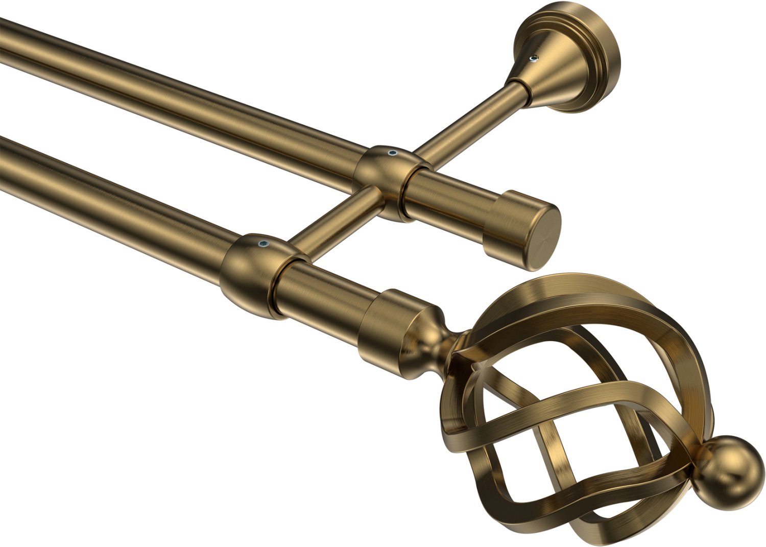 Gardinenstangen aus Metall in 16 mm Ø, 2-läufig, Modell PRIMUS - Paolo Messing Antik (ohne Ringe)