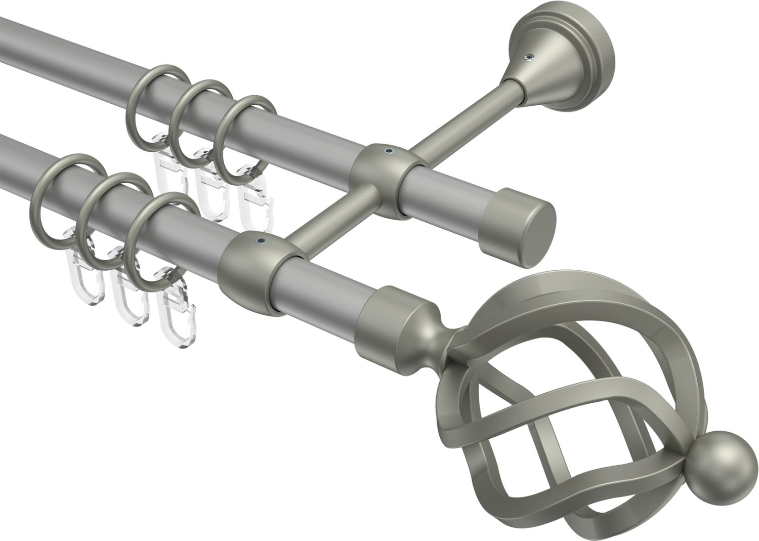 Gardinenstangen aus Metall in 16 mm Ø, 2-läufig, Modell PRIMUS - Paolo Silbergrau / Chrom matt