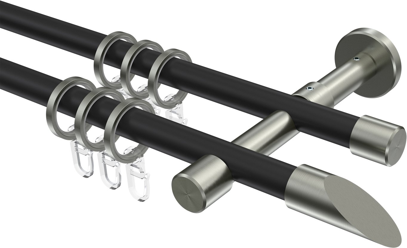 Informationen zu Gardinenstange Metall 16 mm Ø 2-läufig SINUX - Santoni Schwarz / Edelstahl-Optik: