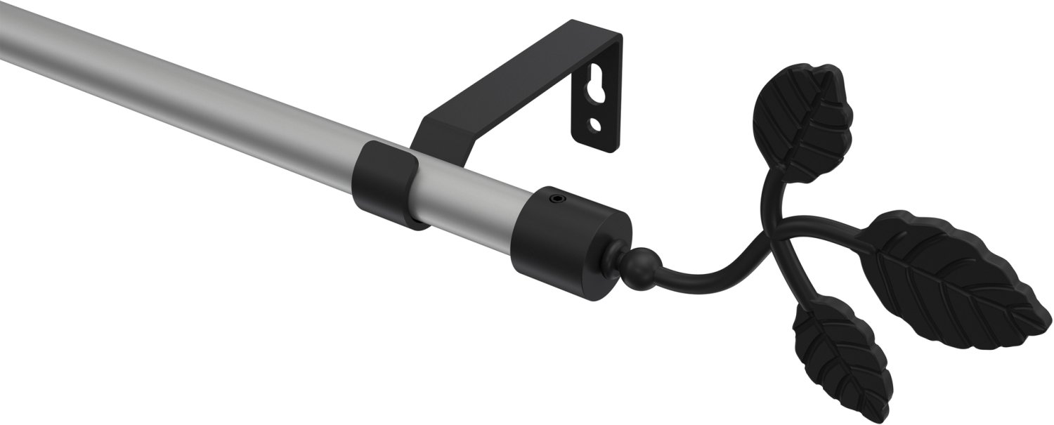 Gardinenstangen aus Metall in 16 mm Ø, 1-läufig, Modell OLYMP - Alessia Silbergrau / Schwarz (ohne Ringe)