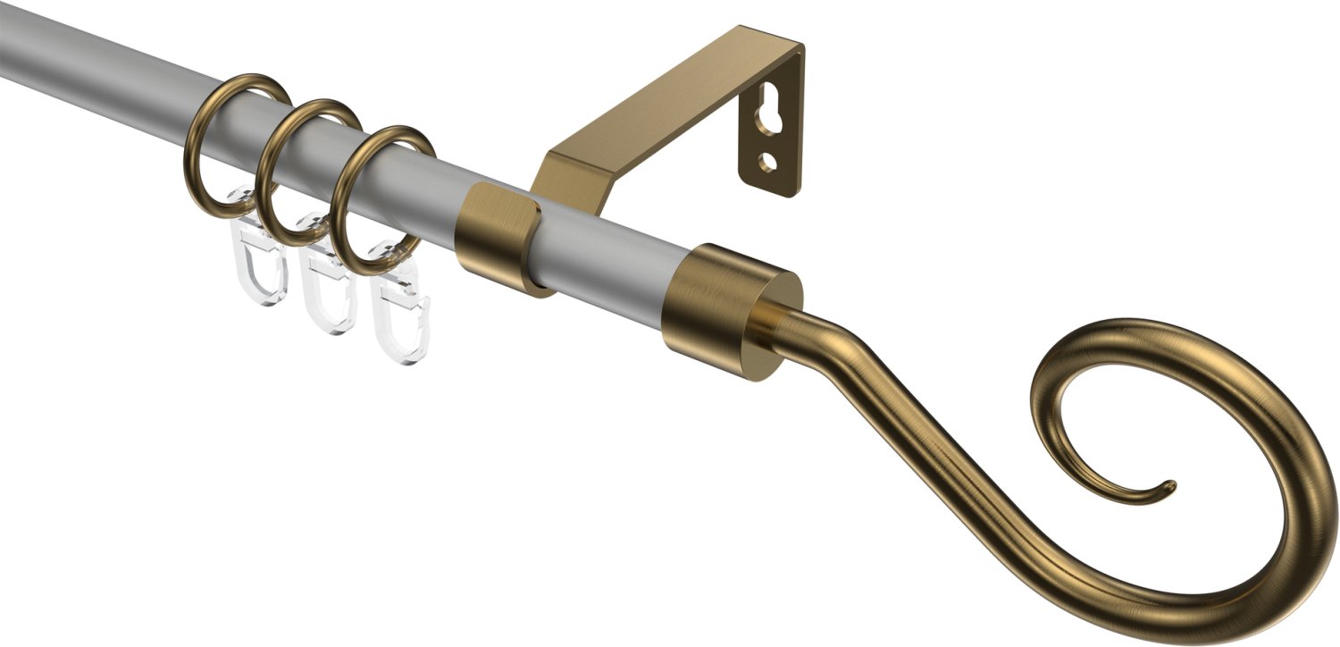 Gardinenstangen aus Metall in 16 mm Ø, 1-läufig, Modell OLYMP - Allegra Silbergrau / Messing Antik