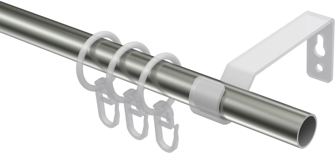 Gardinenstangen aus Metall in 16 mm Ø, 1-läufig, Modell OLYMP - Lorenzo Edelstahl-Optik / Schwarz
