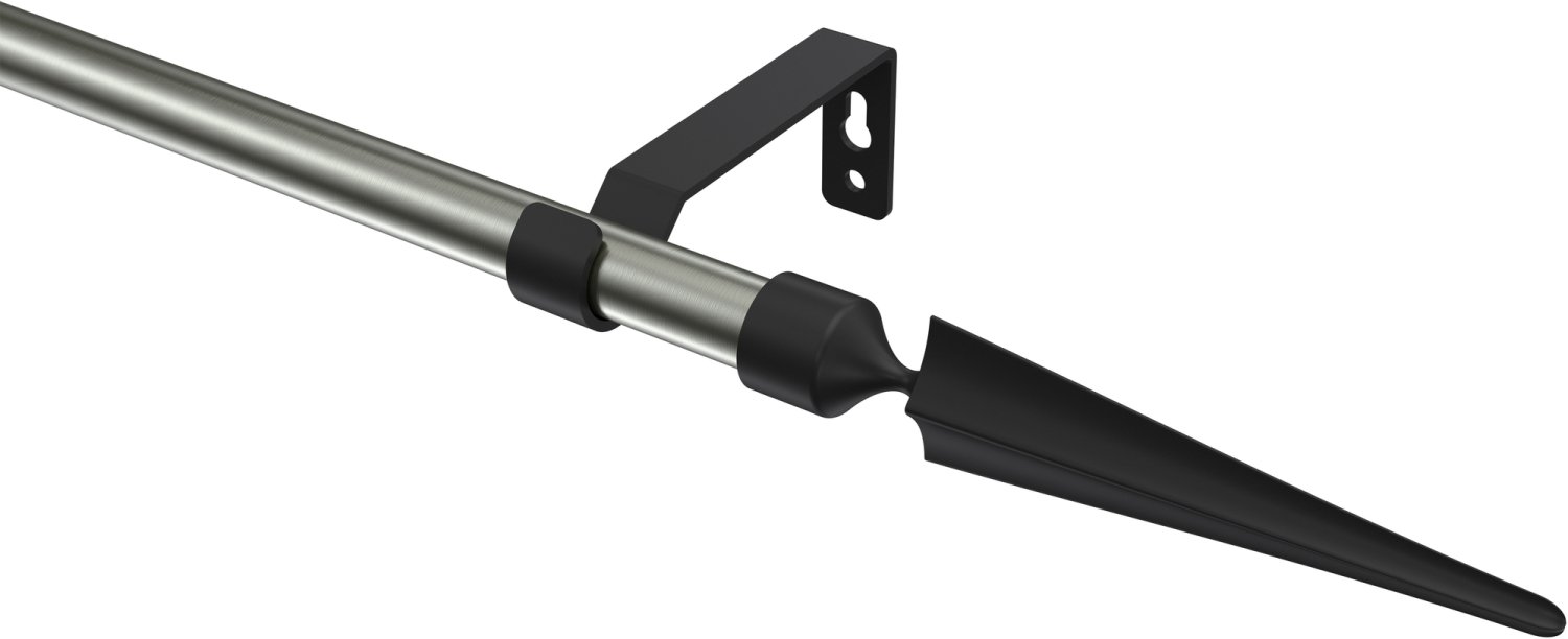 Gardinenstangen aus Metall in 16 mm Ø, 1-läufig, Modell OLYMP - Lorenzo Edelstahl-Optik / Schwarz (ohne Ringe)