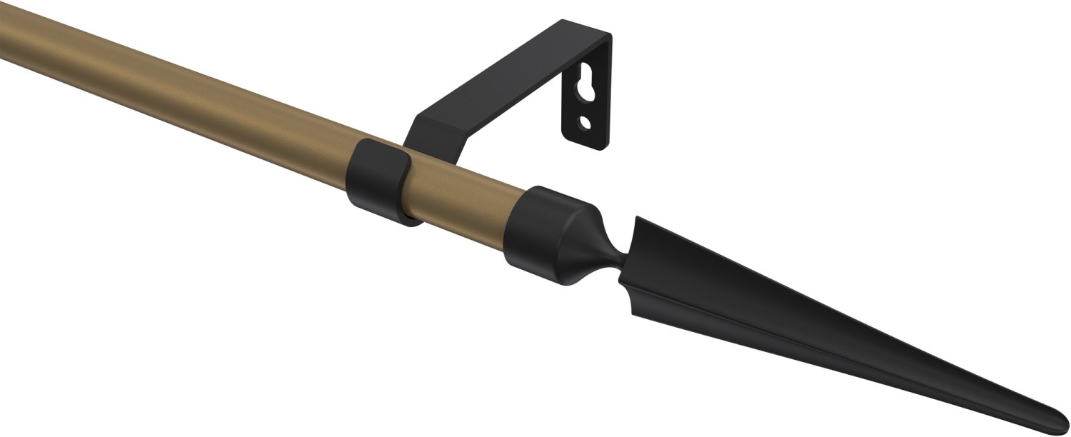 Gardinenstangen aus Metall in 16 mm Ø, 1-läufig, Modell OLYMP - Lorenzo Gold matt / Schwarz (ohne Ringe)