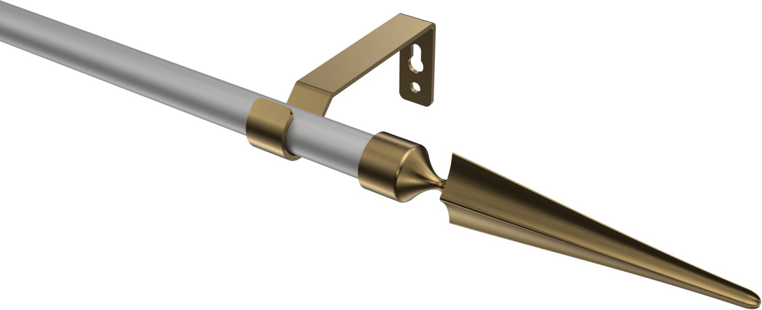 Gardinenstangen aus Metall in 16 mm Ø, 1-läufig, Modell OLYMP - Lorenzo Silbergrau / Messing Antik (ohne Ringe)