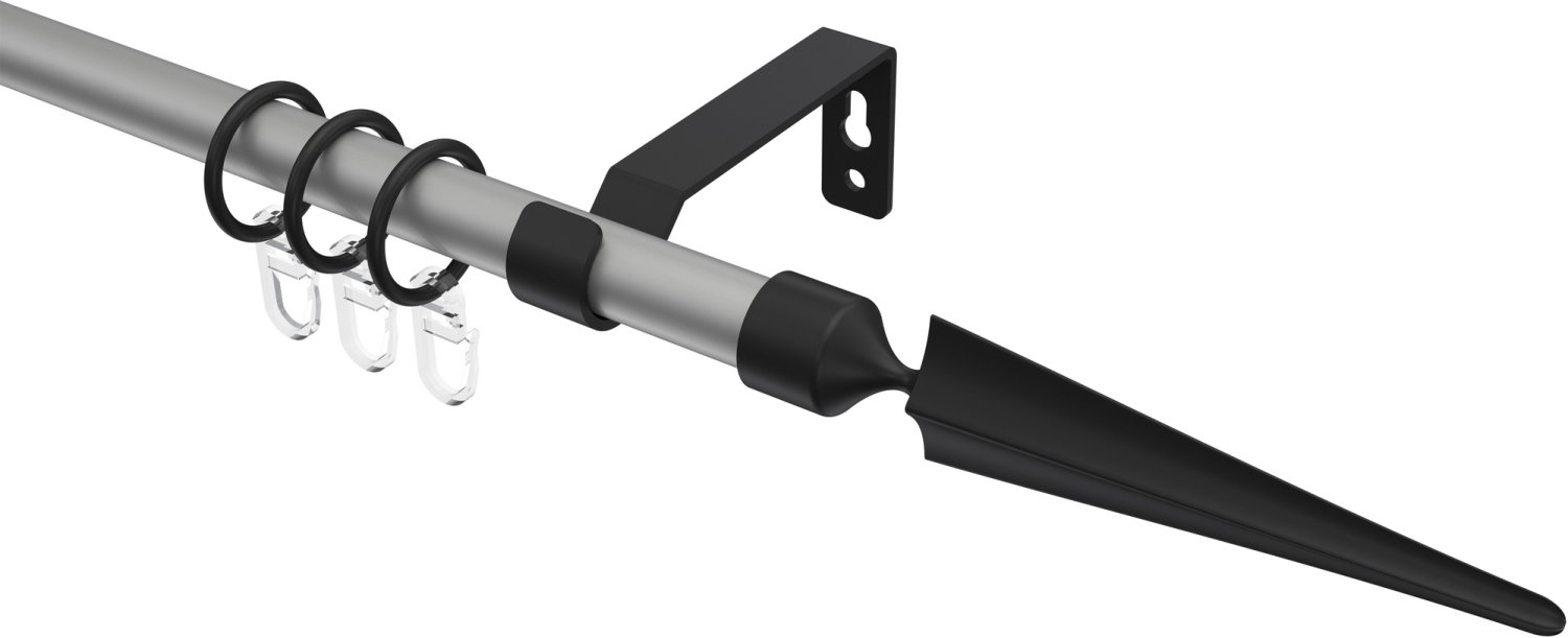 Gardinenstangen aus Metall in 16 mm Ø, 1-läufig, Modell OLYMP - Lorenzo Silbergrau / Schwarz