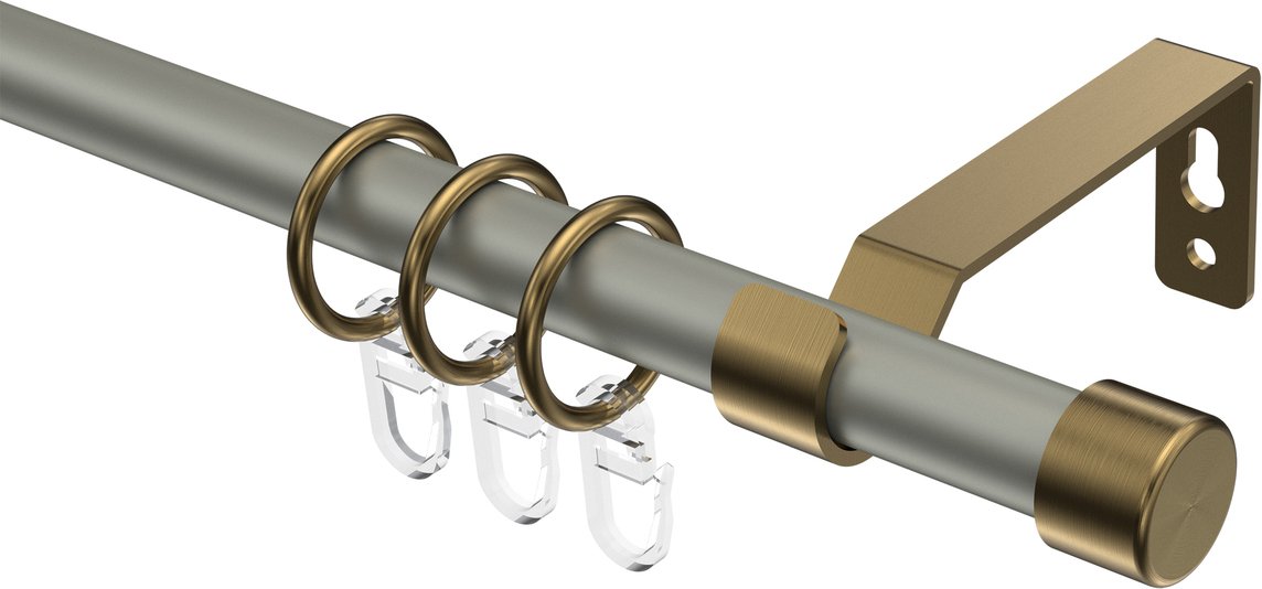 Gardinenstangen aus Metall in 16 mm Ø, 1-läufig, Modell OLYMP - Lucan Chrom matt / Messing Antik
