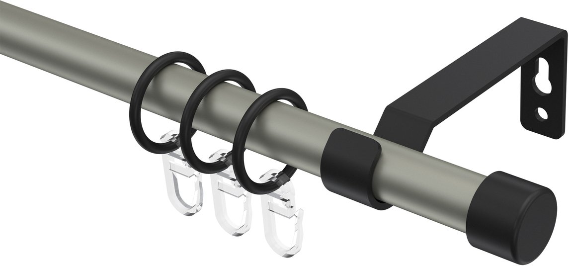 Gardinenstangen aus Metall in 16 mm Ø, 1-läufig, Modell OLYMP - Lucan Chrom matt / Schwarz