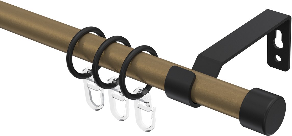 Gardinenstangen aus Metall in 16 mm Ø, 1-läufig, Modell OLYMP - Lucan Gold matt / Schwarz
