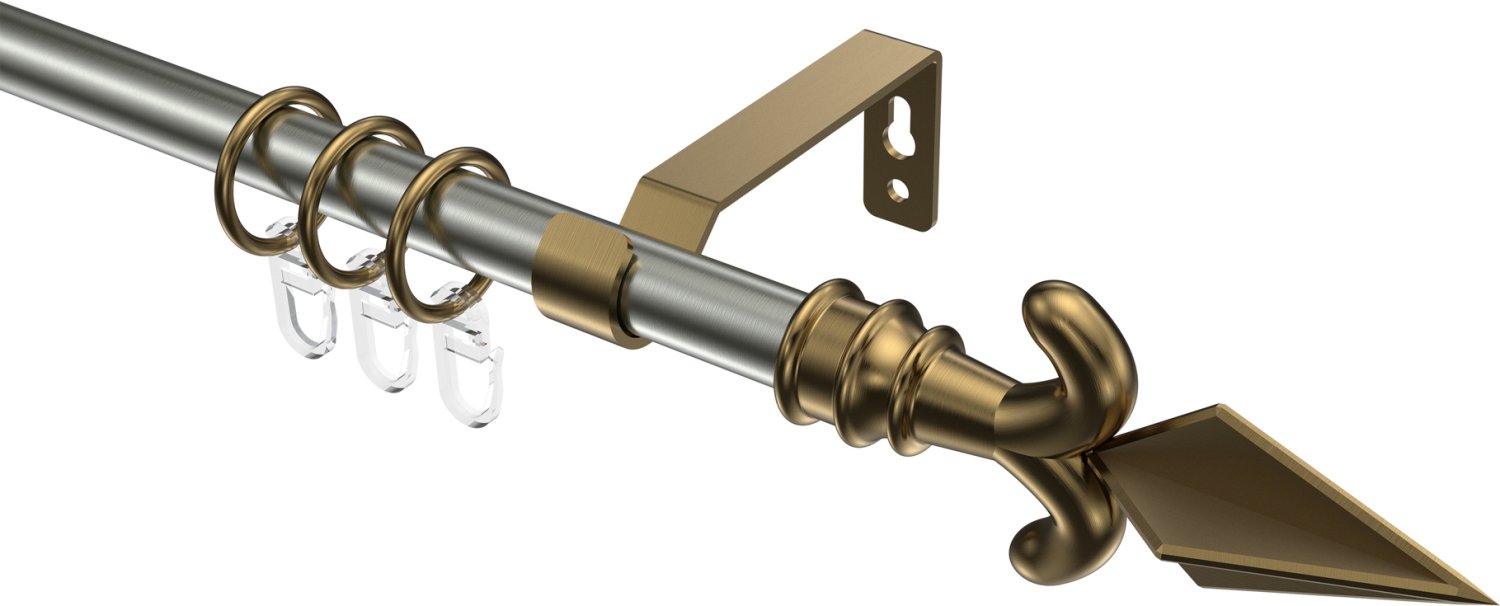 Gardinenstangen aus Metall in 16 mm Ø, 1-läufig, Modell OLYMP - Matteo Edelstahl-Optik / Messing Antik