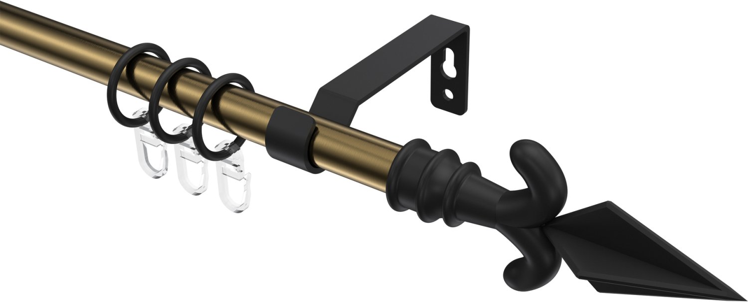 Gardinenstangen aus Metall in 16 mm Ø, 1-läufig, Modell OLYMP - Matteo Messing Antik / Schwarz
