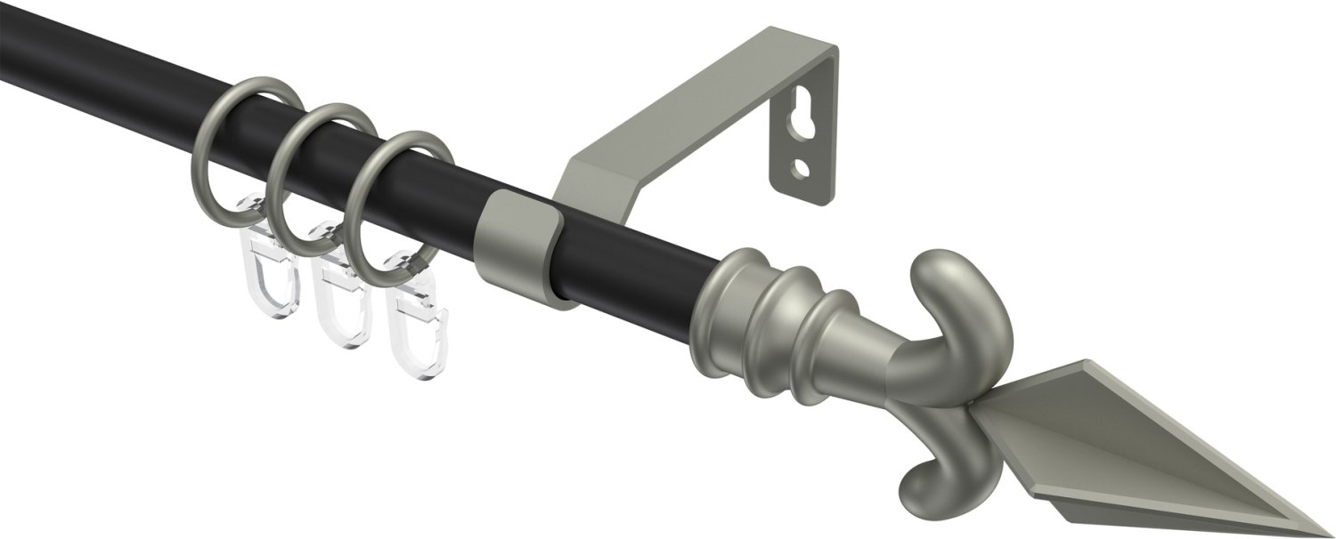Gardinenstangen aus Metall in 16 mm Ø, 1-läufig, Modell OLYMP - Matteo Schwarz / Chrom matt
