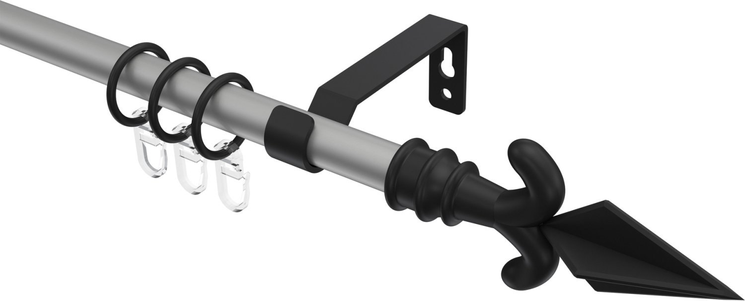 Gardinenstangen aus Metall in 16 mm Ø, 1-läufig, Modell OLYMP - Matteo Silbergrau / Schwarz