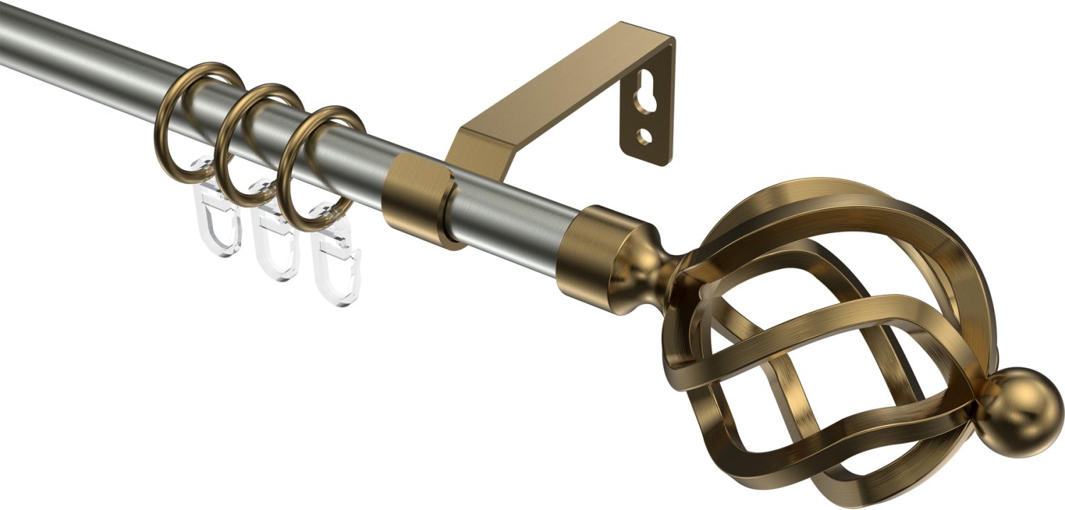 Gardinenstangen aus Metall in 16 mm Ø, 1-läufig, Modell OLYMP - Paolo Edelstahl-Optik / Messing Antik