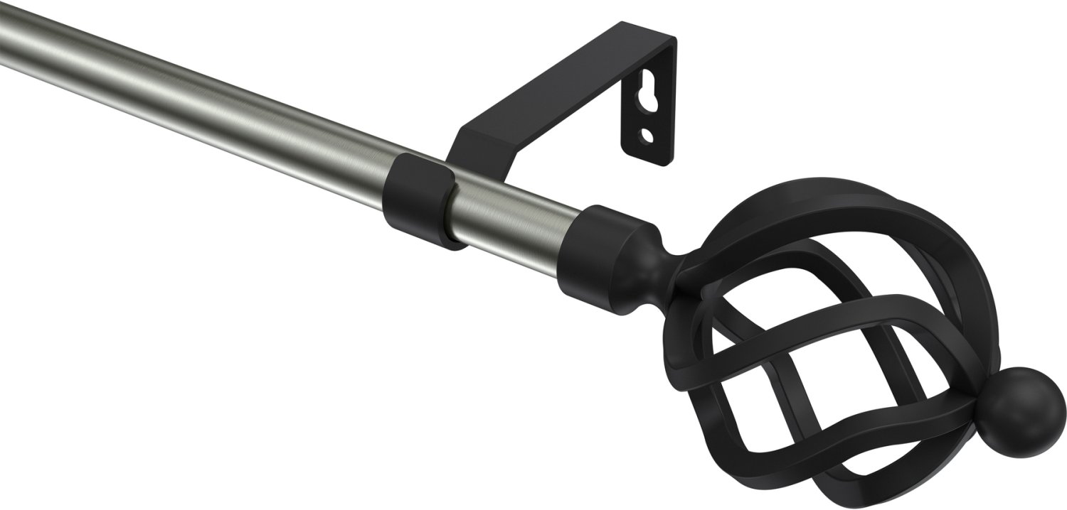 Gardinenstangen aus Metall in 16 mm Ø, 1-läufig, Modell OLYMP - Paolo Edelstahl-Optik / Schwarz (ohne Ringe)