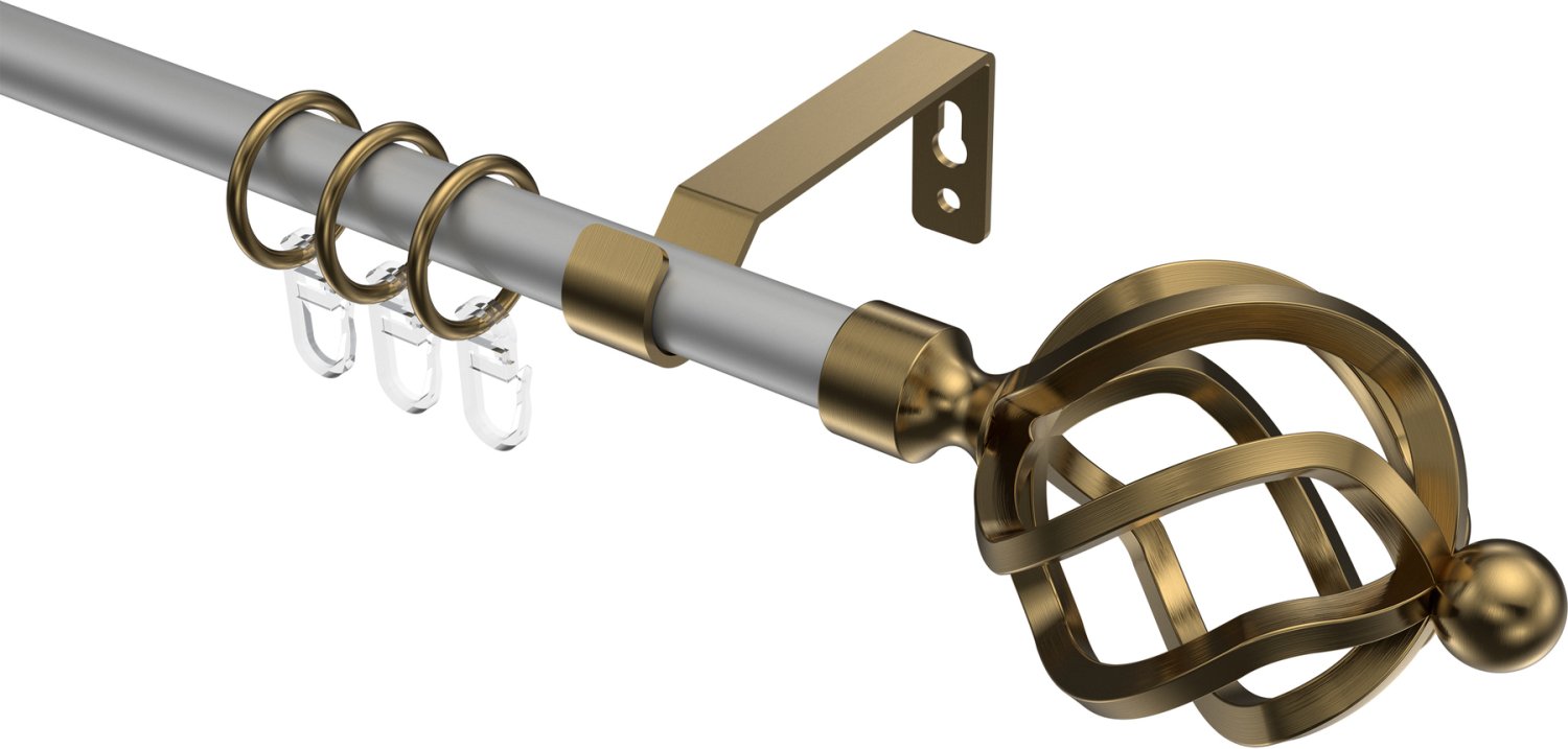Gardinenstangen aus Metall in 16 mm Ø, 1-läufig, Modell OLYMP - Paolo Silbergrau / Messing Antik