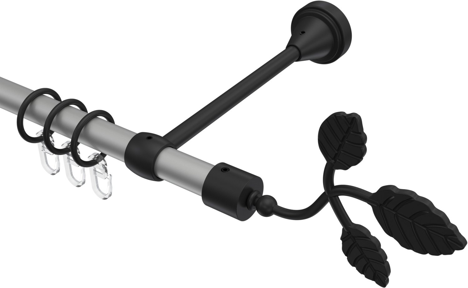 Gardinenstangen aus Metall in 16 mm Ø, 1-läufig, Modell PRIMUS - Alessia Silbergrau / Schwarz