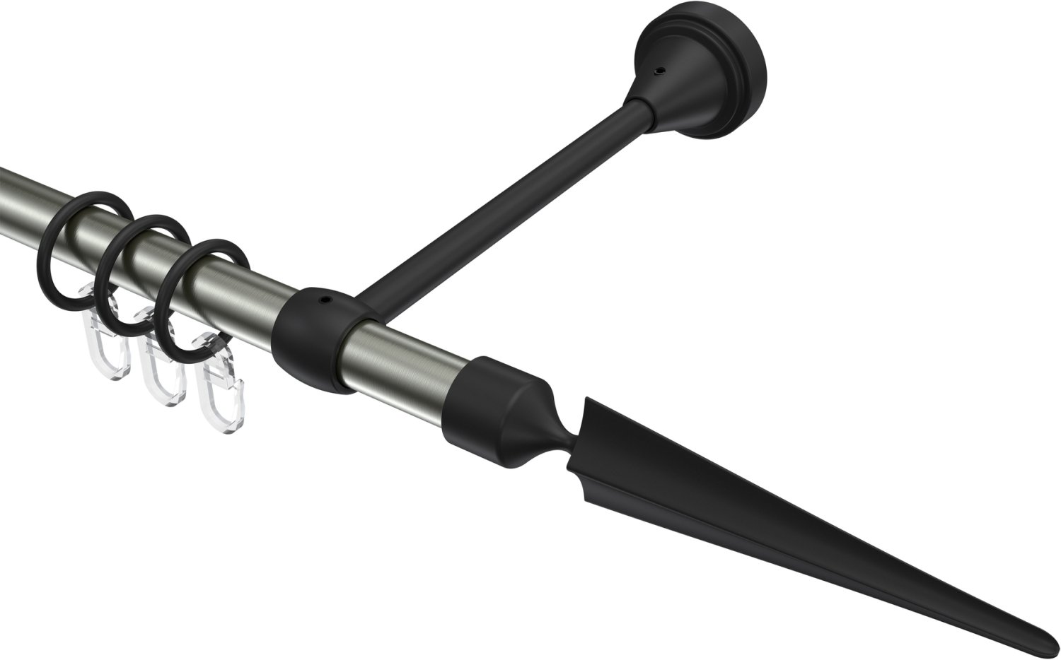 Informationen zu Gardinenstange Metall 16 mm Ø PRIMUS - Lorenzo Edelstahl-Optik / Schwarz: