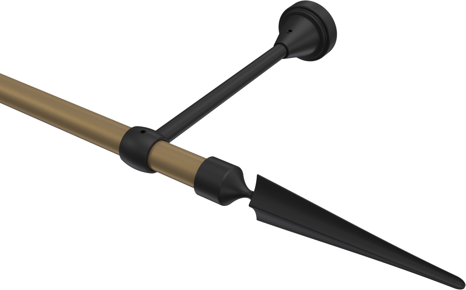 Gardinenstangen aus Metall in 16 mm Ø, 1-läufig, Modell PRIMUS - Lorenzo Gold matt / Schwarz (ohne Ringe)