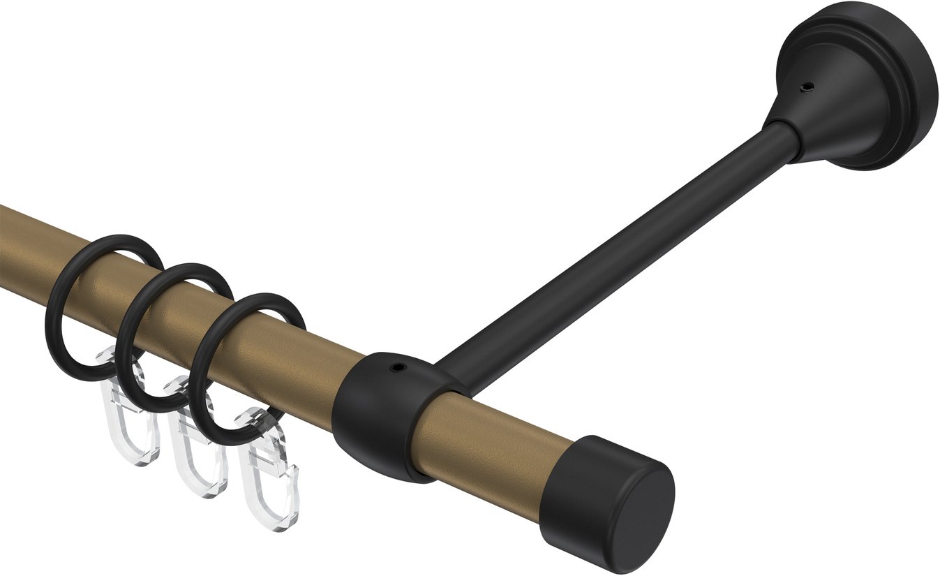 Gardinenstangen aus Metall in 16 mm Ø, 1-läufig, Modell PRIMUS - Lucan Gold matt / Schwarz